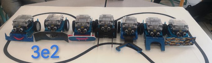 Chaque groupe a conçu un pare-choc pour son robot Mbot et a élaboré un programme afin d'être le plus rapide.