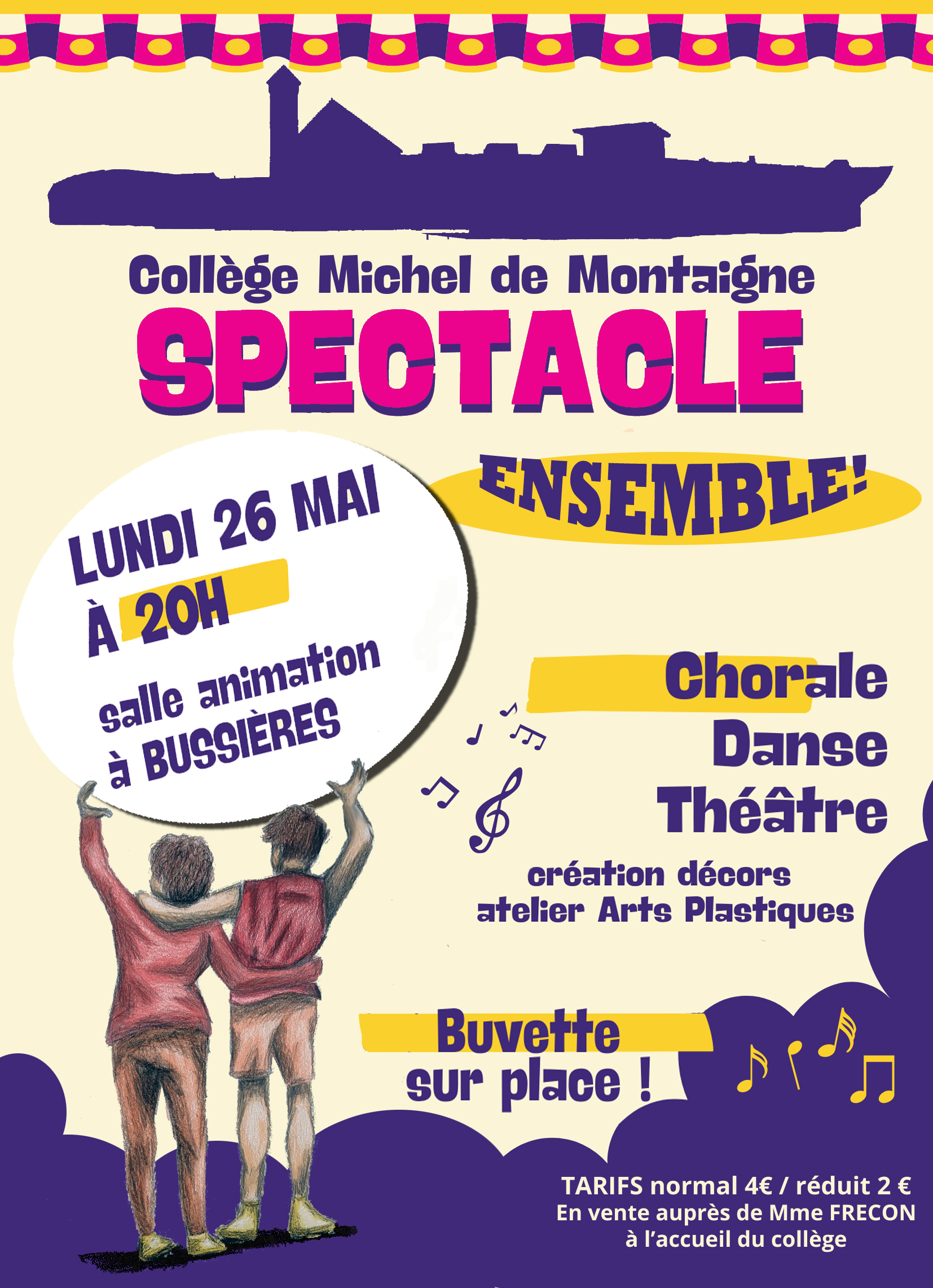 Les billets sont en vente à l'accueil du collège : 2 € pour un scolaire, 4 € pour un adulte.